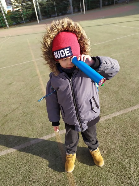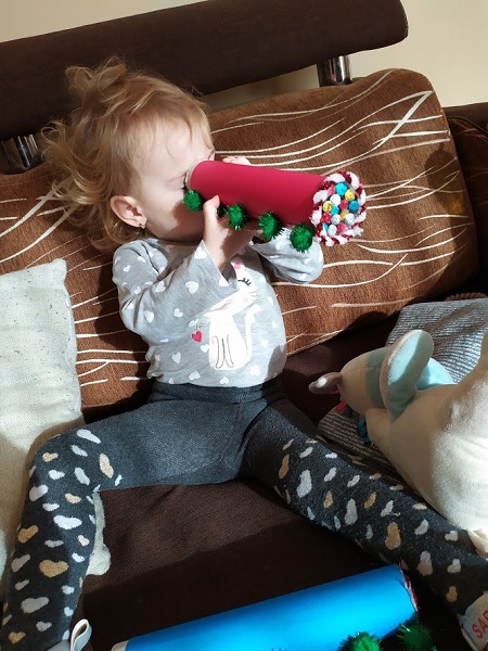 Ale do rzeczy-zrobiliśmy lunety.Dla zabawy przede wszystkim ale tak trochę przy okazji żeby sprawdzić lateryzacje oczu czyli które oko dominuje. (O lateryzacji też się rozwinę na pewno,któregoś dnia :P) U Kalinki jeszcze może się to zmienić ale zaobserwowałam ze zdecydowanie prawe,Marcin zdecydowanie lewe. I super jest lewo ręczny,lewo nożny i już wiem ze przeważa tez lewo oko. Jak zrobić?
