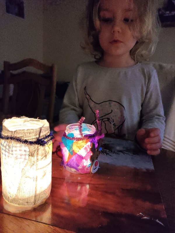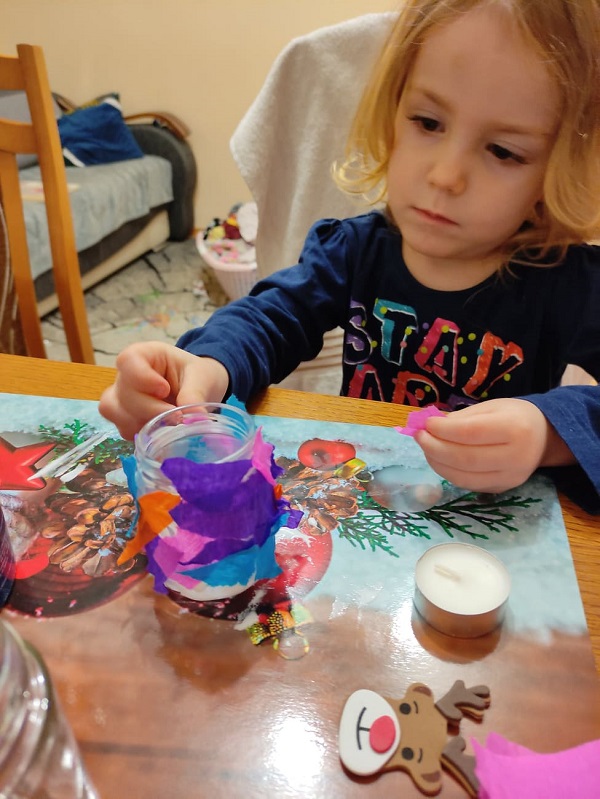 Jednym z zadań kalendarza adwentowego było zrobienie lampionów. Zrobiłam dwa rodzaje jeden z nich z moimi osobistymi skrzatami .Czego potrzebujemy –