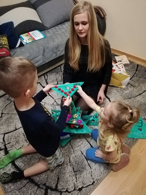 Nasze wynalazki cieszą przede wszystkim nas, możliwość ofiarowanie czego od siebie, szczególnie dzieciom sprawia radość. Na początku Kalina robiąc kartki czy bombki nie chciała ich dawać bo-to moje, ja to zrobiłam. Nie chciała dać nawet rózgi, którą sama zrobiła i ozdobiła !Nie naciskałam, tym razem Marcin posłużył przykładam zachowania i w jej obecności wręczył kilka upominków i oczywiście zachwytów achów i ochów nie było końca, zobaczyła ze to jednak może być fajne. Stopniowo, myślę że odkryła radość płynącą z ofiarowania prezentów. Marcin też wręcza prezenty coraz chętniej i sprawniej
