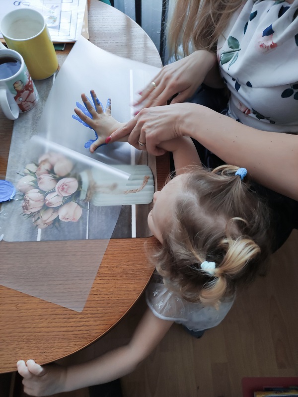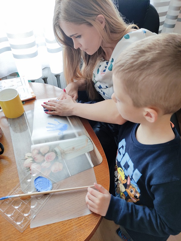Nasze propozycje na dzień mamy, jeszcze zdążycie, ale ostrzegam że jak zwykle jak coś wymyślimy to trzeba się ubrudzić żeby coś z tego wyszło 🙂 Pierwsze zaczerpnięte ze znanej apki, (wciągającej okrutnie swoją drogą ). Efekt końcowy różnił się znacznie od tego co było na filmiku, ale mimo to mnie zadowala. Będę miała pamiątkę do albumu, trwale zalaminowaną i upieczoną. Czego używaliśmy?