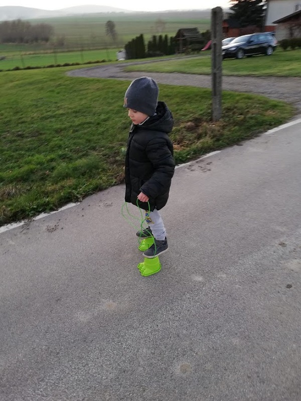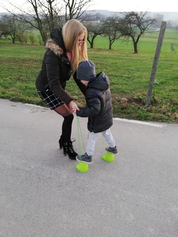zczudła dla dzieciNiby zabawka a pomaga ćwiczyć koordynację wzrokowo – ruchową, poczucie równowagi no i zmusza do ruchu co też przydaje się szczególnie nam. Marcin ma obniżone napięcie mięśniowe i czasem zachęcić go do ruchu czy jakiejś aktywności fizycznej graniczy z cudem, więc każdy zachęcający gadżet się przyda.