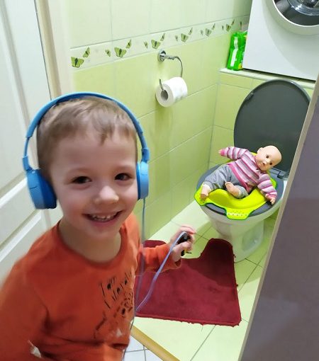 Prawie zapomniałam o ulubieńcu .Niby zabawka a pomaga ćwiczyć koordynację wzrokowo – ruchową, poczucie równowagi no i zmusza do ruchu co też przydaje się szczególnie nam. Marcin ma obniżone napięcie mięśniowe i czasem zachęcić go do ruchu czy jakiejś aktywności fizycznej graniczy z cudem, więc każdy zachęcający gadżet się przyda.