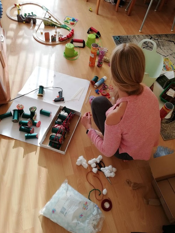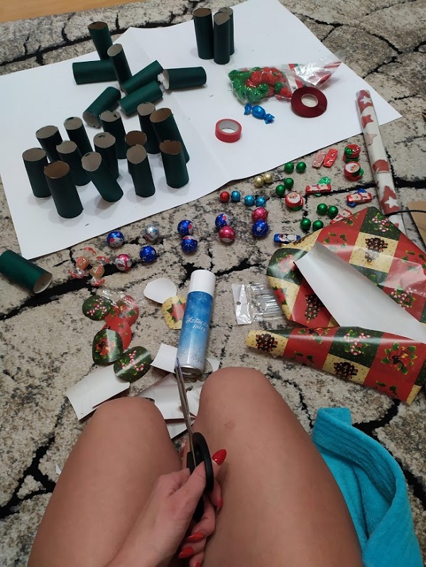Nadchodzi upragnione odliczanie do świąt…Patrze na te wszystkie wasze kalendarze adwentowe i się śmieje.Z siebie 😀 To coś – miało być choinką,a wyszedł…artystyczny nieład. W każdym razie to coś w rodzaju choinki i kalendarza adwentowego. No cóż tworząc takie hybrydy i to moimi rękami, mogłam się spodziewać że coś pierdzielnie i się nie uda. I to nie pierwszy raz gdy coś mi totalnie nie wychodzi, porostu wtedy zwyczajnie się nie chwalę ale teraz chodzi o cel tego… Czegoś. To coś zrobione jest głównie z rolek po „papierze życia”. Każda rolka pomalowana i do każdej włożyłam coś atrakcyjnego x2, Słodycze lub małe zabawki, odznaki z psim patrolem,wszystko sklejone z dwóch stron papierem prezentowym. Gifty są dobrane bardzo indywidualnie żeby były atrakcyjne bo posłużą mi jako pozytywne wzmocnienie, mam nadzieję dla obojga. Nie wiem jak u was ale w naszym przypadku poranki bywają cholernie trudne.Przynajmniej dla mnie, wiadomo dzieci z czasem się nie liczą to im wszystko jedno.Zjedzenie śniadania i wyszykowanie się do przedszkola na czas… We mnie się gotuję jak Marcin setny raz odchodzi od stołu Kalina dłubie w talerzu i dialogi w stylu : nie chce tego chce (powiedzmy) bułkę! no ok zabieram płatki -nieeeeeee chce płatki… Wręcz walczę ze sobą żeby nie ryknąć na nich niczym niedźwiedź. Oddechy, medytacja prawie że joga przy stole(oczywiście w moim wykonaniu)… Trwa to minimum pół godziny. Minimum. I mam dwie opcje- albo budzić ich koło 4 albo coś wreszcie z tym zrobić zanim osiwieje przez miskę płatków z mlekiem. To by było głupie ale całkiem możliwe. Zdecydowałam że gdy zjedzą śniadanie w miarę normalnym czasie(ustalę z nimi Maks 15 minut i myślę że wprowadzę budzik) bez szczególnych udziwnień przy stole to w nagrodę będą mogli otworzyć jedna z tych rolek a tam niespodzianka! Myślę że podziała. I pewnie będzie lincz że cukier z rana i w ogóle ze cukier! Moje dzieci nie jedzą go zbyt wiele. A to ma być po to żeby ich zmotywować i myślę że w tym przypadku zda egzamin. Po prostu dostaną deser zaraz po śniadaniu a nie po obiedzie. Trzymajcie kciuki, może się uda a po świętach będę myślała co dalej, narazie skupiam się na celu głównym a później zastanowię się jak powoli wychodzić z nagradzania akurat za to. Myślę że to dobra okazja, Wy pewnie też macie kalendarze adwentowe w różnych formach u siebie,może też chcecie nad czymś popracować z jego pomocą?Moim zdaniem warto spróbować.Biorę się za robienie prezentu na Mikołaja. I tu też wasze wsparcie duchowe by się przydało .Oby wyszło lepiej niż to 😀