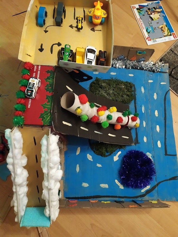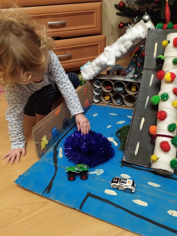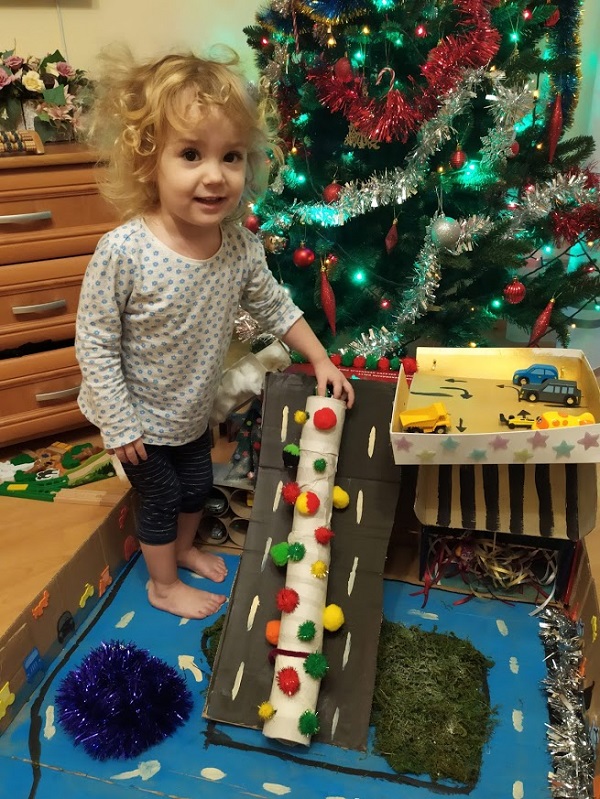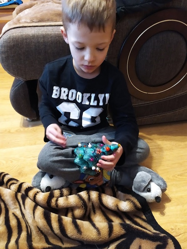 Mikołaj, święta… Mimo całego zabiegania, chaosu to w całościowym bilansie może wyjść to na plus. Wszystko jak zwykle zależy od naszego podejścia. Dla mnie miesiąc grudzień obnosi się z hasłem – WDZIĘCZNOŚĆ. W ciągu roku zapominamy często o podstawowych świętach, urodzinach czy imieninach. Grudzień to szansa na zrehabilitowanie się-Mikołaj może przynieść prezent tym najbliższym ale też tym z reguły dalszym ,niespokrewnionych a dla nas ważnych. Dla mnie to radocha, wręcz rytuał ❤️Mogę  obdarować jakimś skromnym podarkiem terapeutów bo w sumie nigdy nie wiem jak wyrazić im swoją wdzięczność za ich pracę i zaangażowanie i w sumie nigdy nie wiem kiedy jest odpowiedni moment, kiedy wypada… A w grudniu Mikołaj zawsze mógł zostawić jakiś prezent u nas i kropka 🙈no i w grę wchodzą też te małe rączki które mogę zaangażować , przy okazji ćwiczą i cieszą się że mogą kogoś obdarować tym co sami zrobili. To kilka propozycji od nas. Dziadkowie na razie dostali choinki. Kartki, bombki stroiki Pinterest, Google itp pękają od propozycji. Nie omieszkałam też zrobić prezentu dla dzieci ale do gustu przypadł głownie Kalince-to parking z myjnią i fragmentem drogi.Kilka elementów o rożnej strukturze-wata,sztuczny mech,drapiące gąbki,wstążki,pompony,łańcuchy choinkowe czyli to co było w pobliżu i szafie „przydasie” Marcinowi obiecałam domek dla lalek ale nie wiem kiedy to wyjdzie bo słabo mi wychodzi zarządzanie moim „wolnym” czasem.