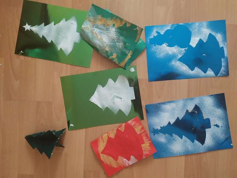 Kartki może nie są najpiękniejsze .Zdolności moje i moich dzieci są chyba na podobnym poziomie, wiec ciężko by nam było naciągnąć i oszukać w tym temacie 🙂 Wiec stawiamy na prostotę ,ich sprawność manualna będzie większa to i  kartki pewnie ładniejsze…