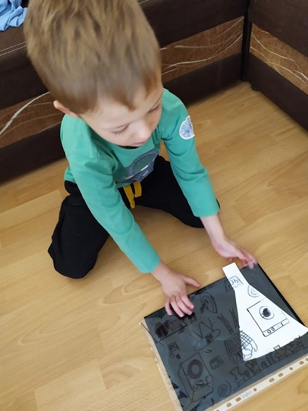 Zrobienie a raczej wymyślenie czegoś co zainteresuje tego gościa to nie lada wyczyn. Bo wykonanie bywa proste o ile ktoś ma jako takie zdolności do rysowania. Moje są co najmniej zerowe ,nigdy nie lubiłam rysowania wycinania wyklejania i śmieję się w duchu że teraz się to na mnie mści .Do rzeczy